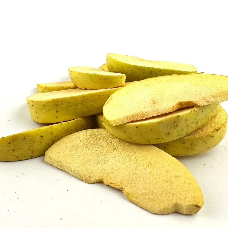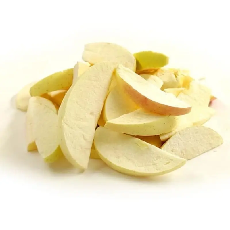 بدون مواد افزودنی: سیب خشک منجمد بدون نیاز به مواد نگهدارنده یا افزودنی‌های شیمیایی تهیه می‌شود.